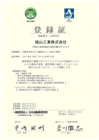 ISO14001認証の取得